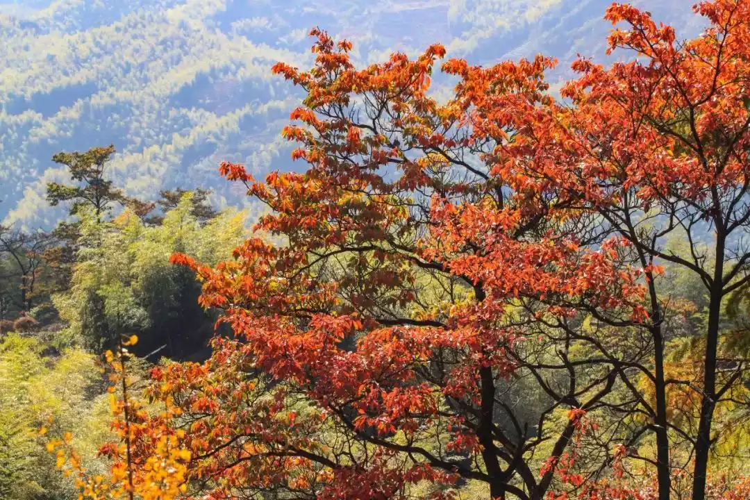 In autumn, when you look down at Siming Mountain from a God's perspective, you will see shades of red and orange beginning to appear on the original yellow-green background... It is no exaggeration to describe this place as "colorful"!