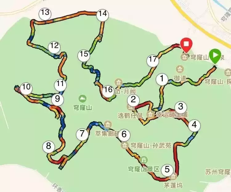Qionglong Mountain is located in the western suburbs of Suzhou. Its main peak, Ruomao Peak, is 341.7 meters above sea level and is the highest of the mountains on the east bank of Taihu Lake.