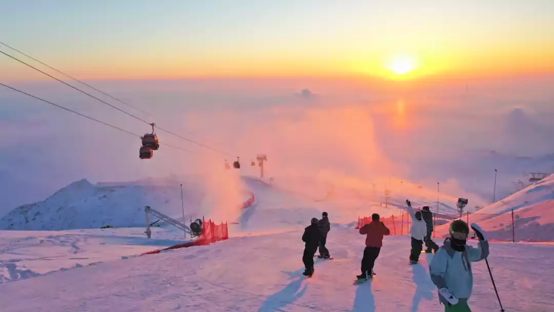 Sunset at Jiangjunshan Ski Resort is perhaps the most romantic moment for snow tubing. The clouds in the sky begin to "burn," and the rosy glow illuminates the slopes, making everyone stop and admire this gentle winter romance!