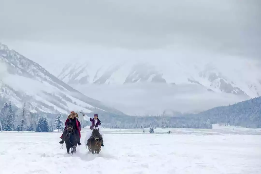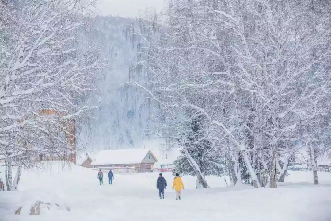 Besides skiing, Xinjiang in winter is also a treasure trove of untapped opportunities. The snow-covered Kanas and Hemu Villages resemble the world of a childhood crystal ball, with snowflakes gently falling, delicately dotting the rooftops.