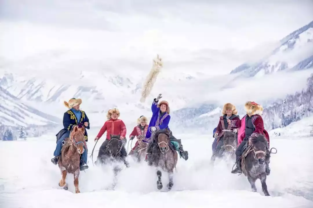 Horse-drawn sleighs, sheep-grabbing in the snow, girls chasing... various traditional events were on display. You can even witness the ancient "fur skiing" with your own eyes. The New Year atmosphere reached its peak amidst cheers!