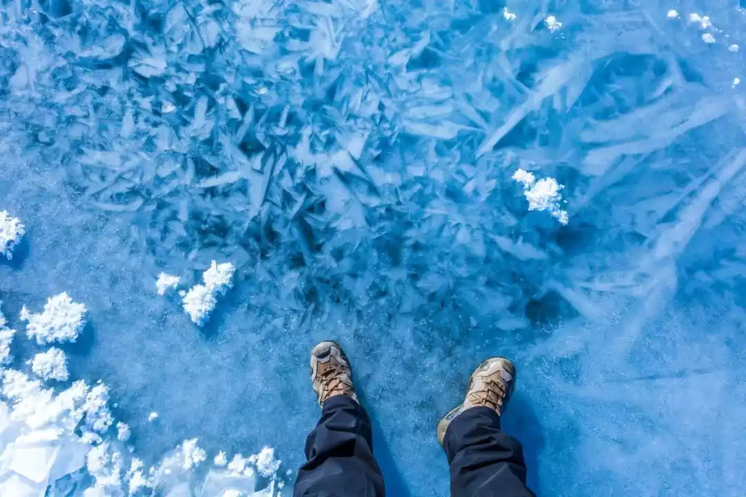 Admire the frozen blue lake from different angles. There are large pieces of blue ice, icicles, and ice flowers on the lakeside. In places with many microorganisms on the bottom of the lake, clusters of ice bubbles will form, from large to small, layered, and you can't help but marvel at the magic of nature!