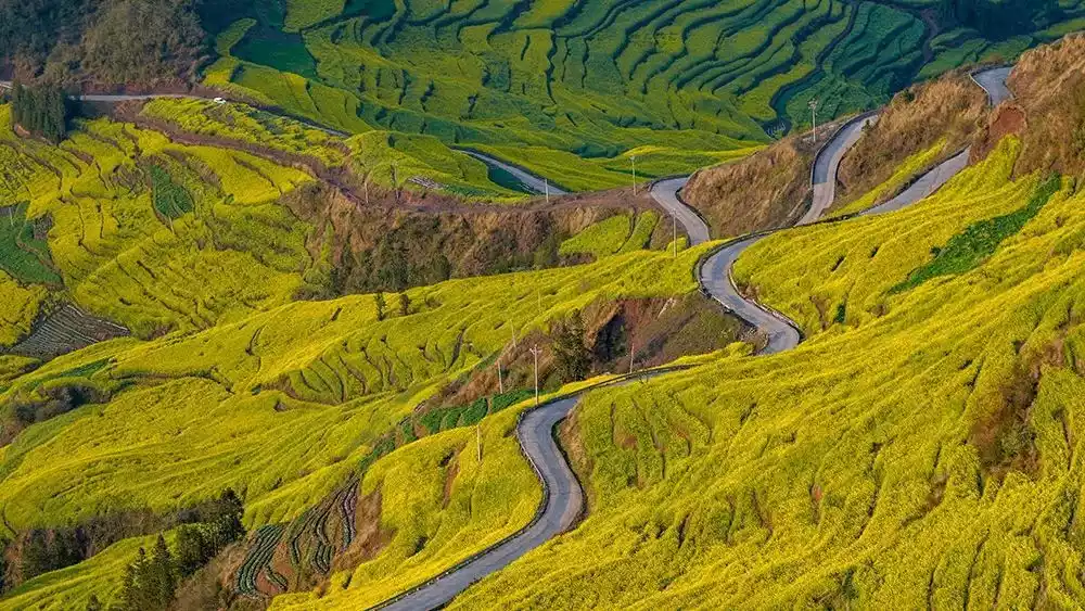Slight variations in flowering time create vibrant colors, and the afternoon sun casts a slanting shadow across the flower fields, adding a warm and three-dimensional touch. In 2015, Luoping was selected by The Huffington Post as one of the world's eight most colorful places, captivating photographers.