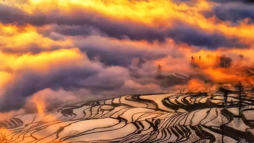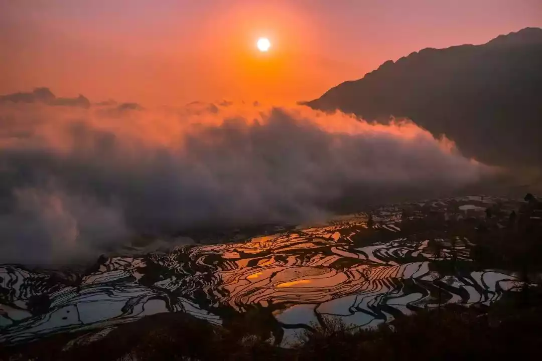 The terraces are irrigated and maintained from November to April of the following year. Thousands of acres of terraces dyed the sky blue stretch out beneath your feet. It is hard to find the right words to describe the shock in your heart. It is worthy of being one of the "Seven Greatest Cultural Landscapes in the World" and has been rated as one of the "50 Places You Must Visit in Your Lifetime".