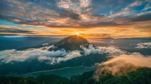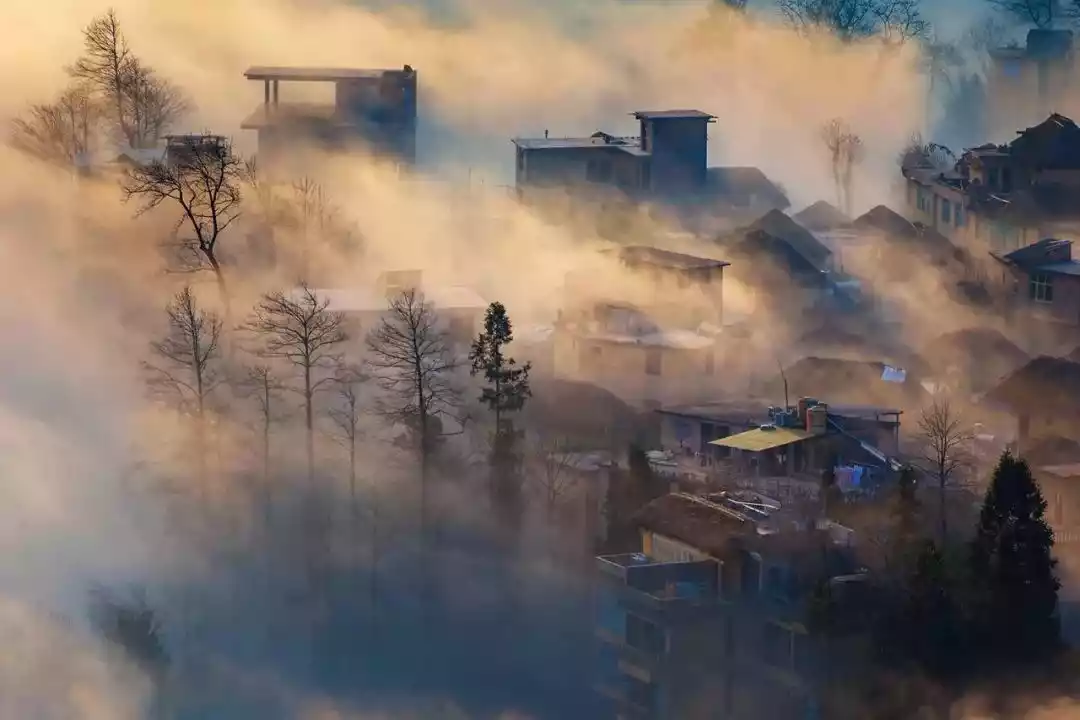 The landscape is a mix of traditional Chinese ink painting and the wild splashes of Impressionist color. Waiting for sunset in Bada, the afterglow casts a golden glow over the terraced fields. The graceful lines of the ridges cut through the majestic landscape, breaking the boundaries without losing the harmony of the painting.