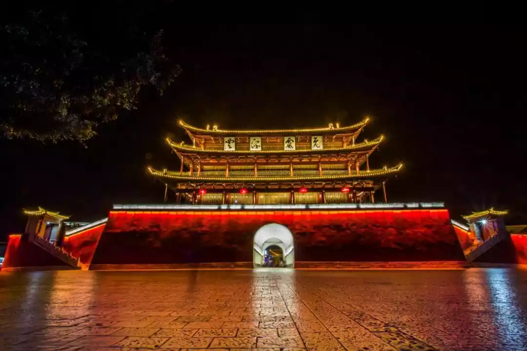 The Chaoyang Tower, known as the "Dome of the Southeast," has remained unchanged for over 600 years, except for its illumination at night. The Jianshui Confucian Temple, second only to the Confucius Temple in size, embodies the people's reverence for traditional culture.