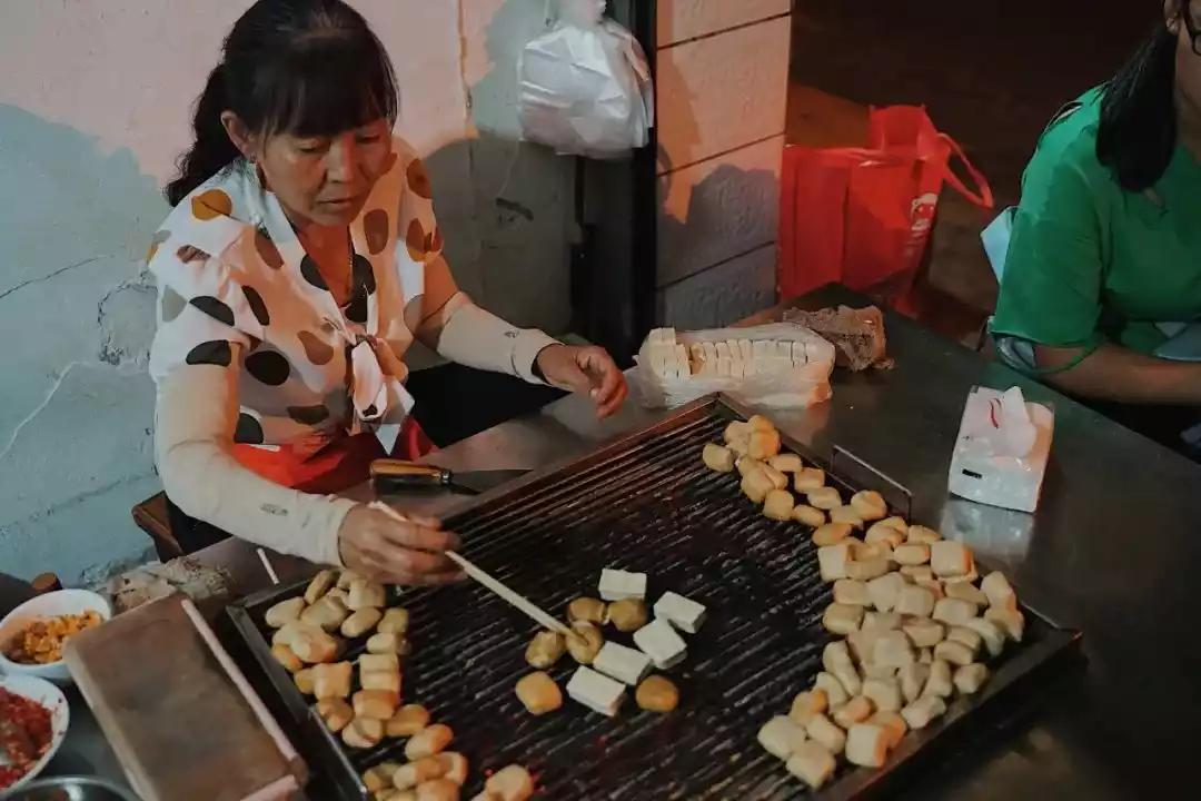 When the tofu's skin is golden brown and puffed up, pick up a piece, blow on it to remove the heat, dip it in water, and put it in your mouth. The moment the tofu bursts in your mouth is simply blissful. On a day with fireworks, they grill it all day long. A calm demeanor is the life philosophy of the people of Jianshui.