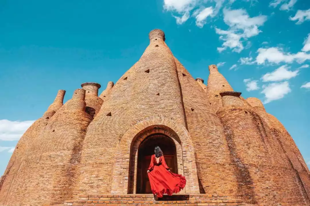 Inspired by the red wine culture (wine bottles) and the fire culture (flames) of the Axi people of the Yi ethnic group, this art castle, built with staggered red bricks, replaces traditional square windows with triangular wall holes. As time goes by, sunlight shines in from all directions, creating a shifting light and shadow, exuding a strong artistic atmosphere everywhere.