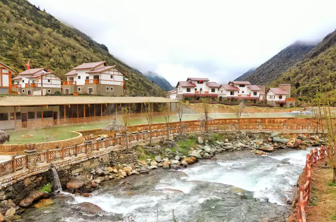 Then we passed by Zhonggu Village, formerly known as "Hot Spring Pond", which is another famous hot spring group outside Kangding City. Hot spring pools of various sizes extend all the way to the river.
