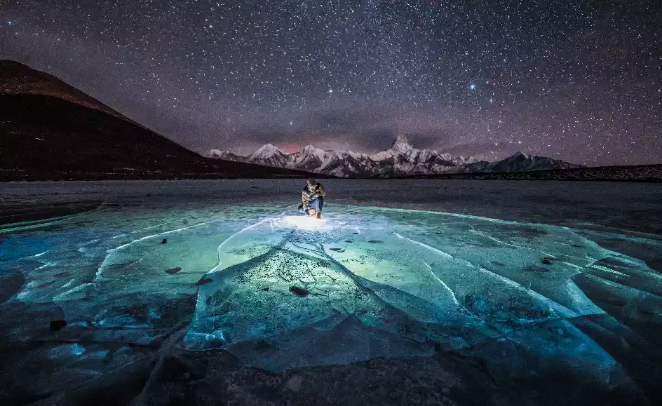The lake here is comparable to Lake Baikal, and you can witness the starry sky and the dreamy blue ice complementing each other.