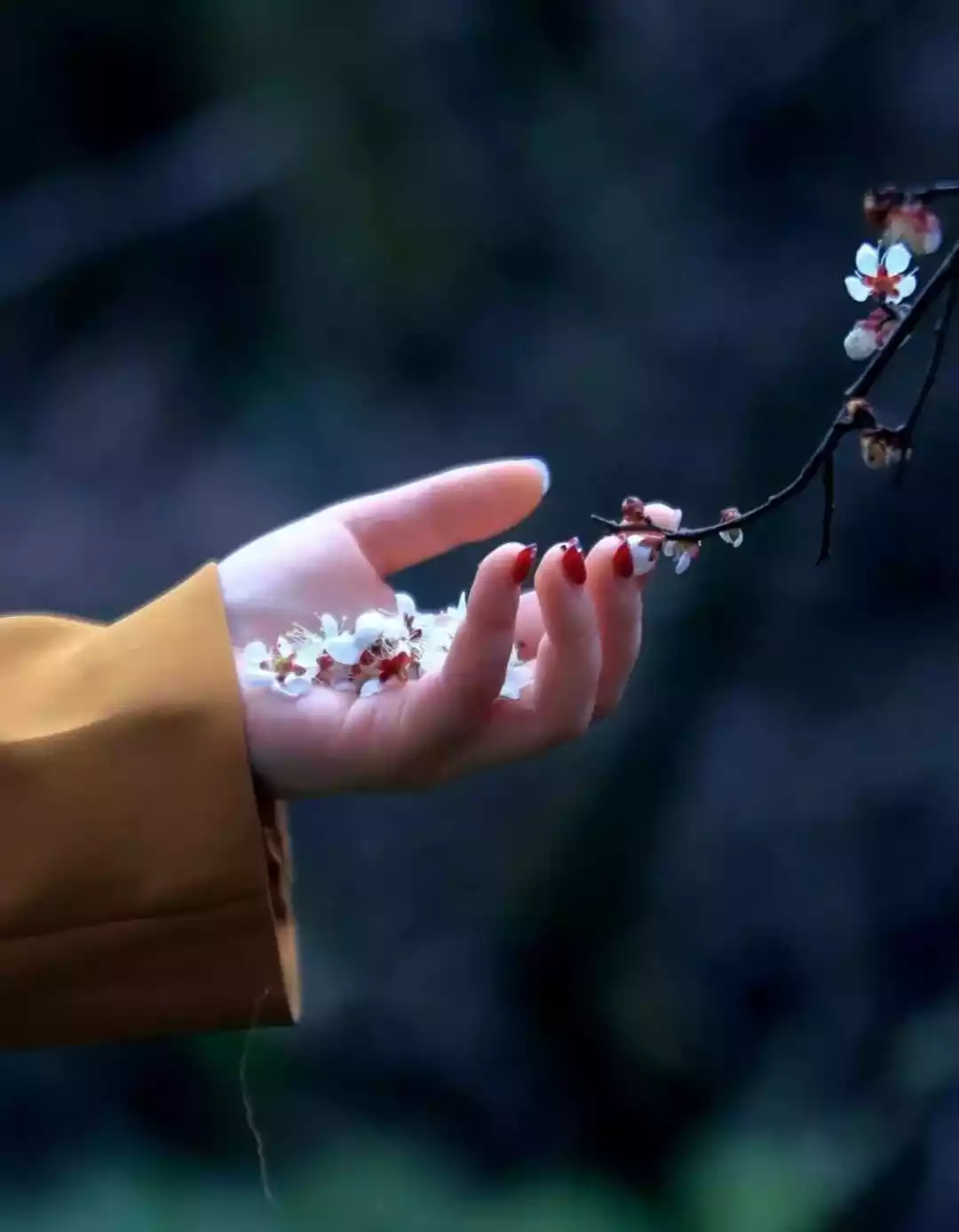 Going up the mountain in search of flavor, I found that the plum trees on both sides of the mountain road were already in bud. Even though they had just been washed by rain, they still stubbornly opened their petals and bloomed proudly in the wind, with bright colors and overflowing fragrance.