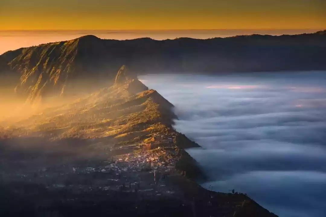 At sunrise, Mount Bromo looks like a dream in the morning light. If you are lucky, you can also capture the shocking scene of the sea of clouds engulfing the Lawang village next to Bromo!