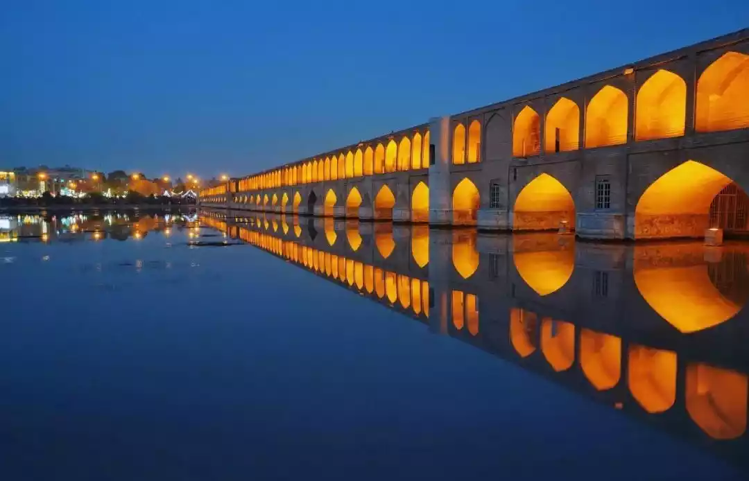 Go to the Thirty-Three Arch Bridge in Isfahan and experience the exquisite Safavid architectural art during the best photo-taking time, the Blue Hour.