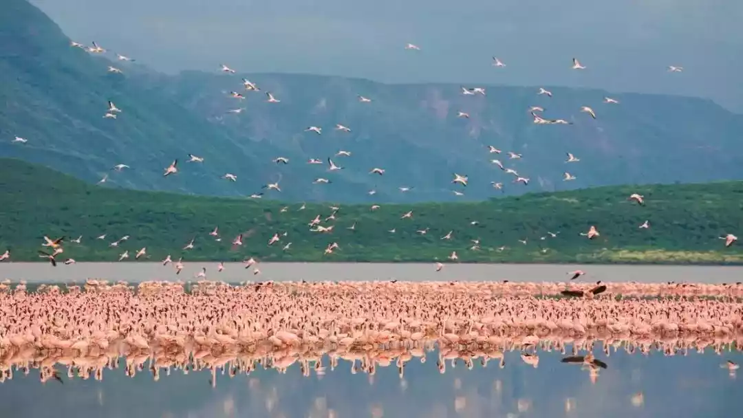 Go to Lake Bogoria and take pictures of flamingos in the sky under the afterglow of the sunset.