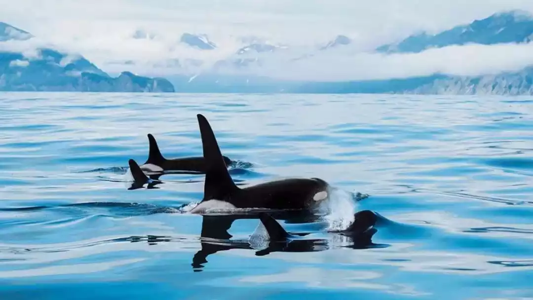 Go to the Bering Sea and record a group of killer whales surfacing to play and fight.