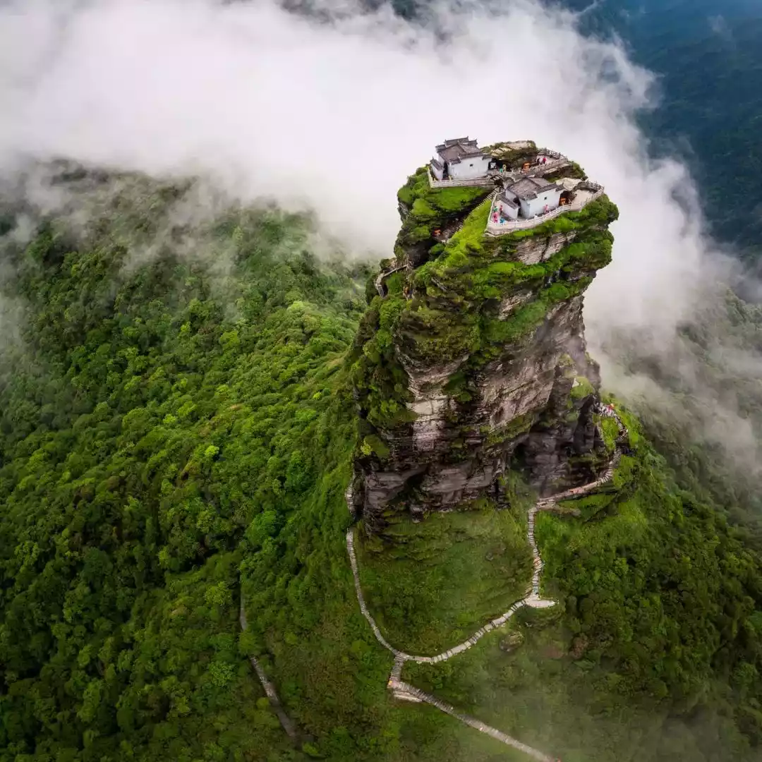 We can climb the Red Cloud Golden Summit and see the Mushroom Rock. If we are lucky, we can also see the vast sea of clouds and even the Buddha's light on the top of the mountain. Come to Fanjing Mountain to pray, and your wish will surely come true soon!