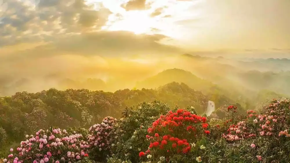 At the beginning of March, rhododendrons covering the mountains and hills bloomed one after another, and the whole mountain was full of colorful flowers. The entire scenic area is mainly divided into two parts, Jinpo and Pudi. Due to the lower altitude of Jinpo Scenic Area, the flowering time will be slightly earlier than that of Pudi Scenic Area.