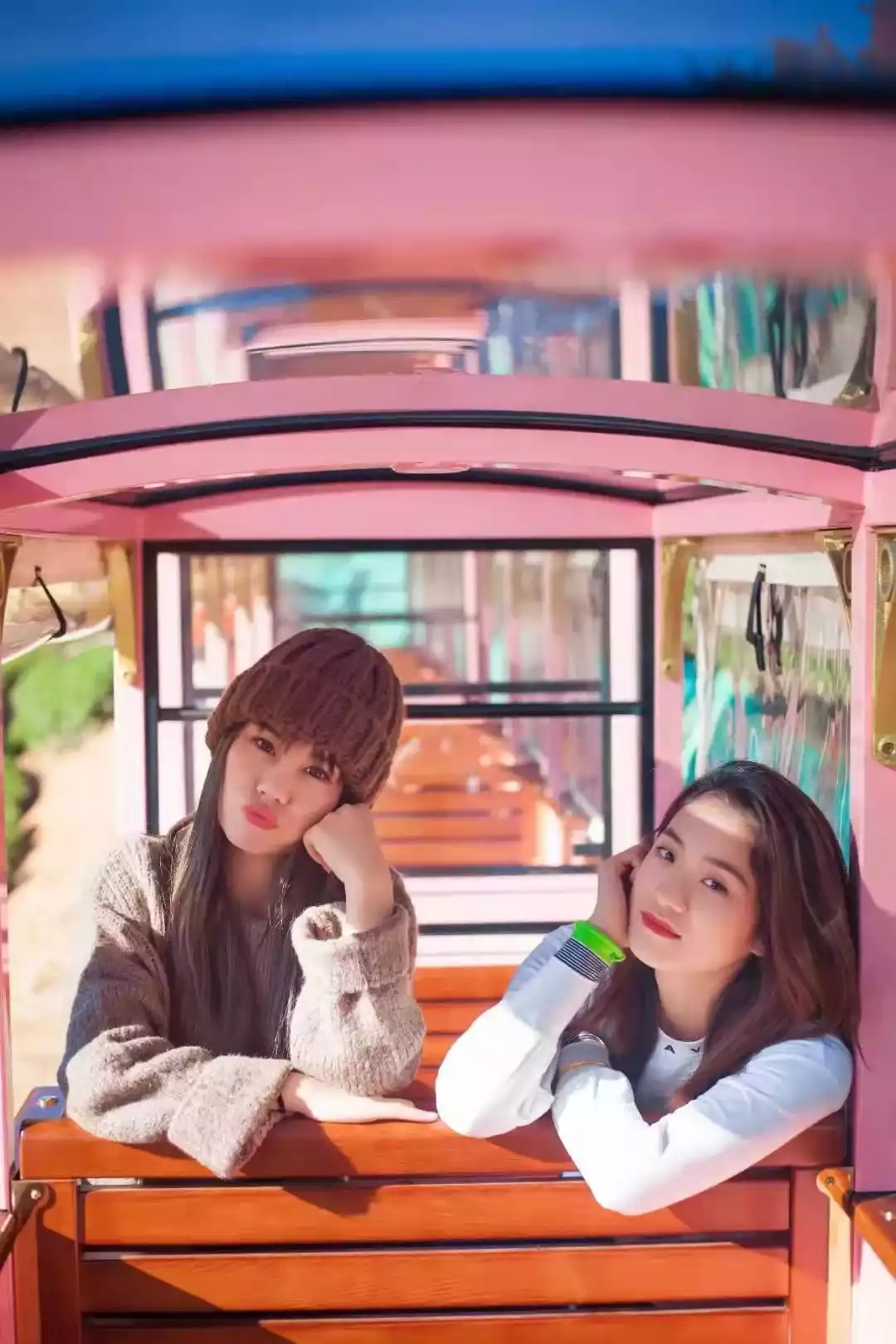 Hold the ticket, stand on the platform, and take your child on a pink train.
