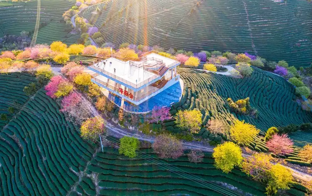 On the tea mountains covering more than 50,000 mu, strolling in the garden of 100,000 cherry trees, breathing in the fresh air of nature, it feels like entering a paradise.