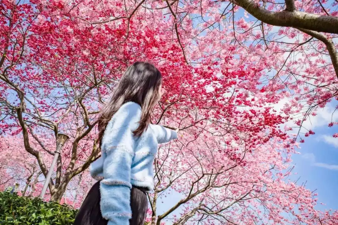 Yongfu Cherry Blossom Garden boasts nearly 100,000 cherry trees, with 42 varieties. This number is considered the largest of any cherry blossom garden in China, exceeding five times the number of cherry trees in Okinawa, Japan. Its impressive collection should not be underestimated.