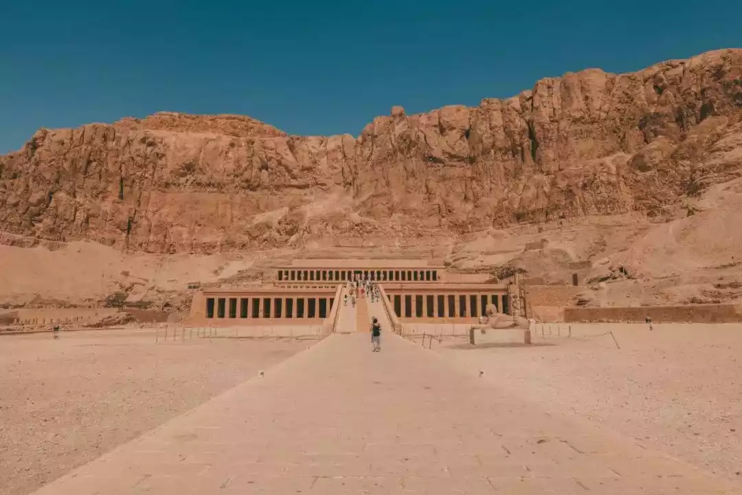 The temple consists of three platforms. The exquisite murals record the unprecedented prosperity of Egypt's trade with neighboring countries during the queen's reign, as well as sacrificial scenes. The statue with its arms folded across its chest seems to be waiting for some divine summons.