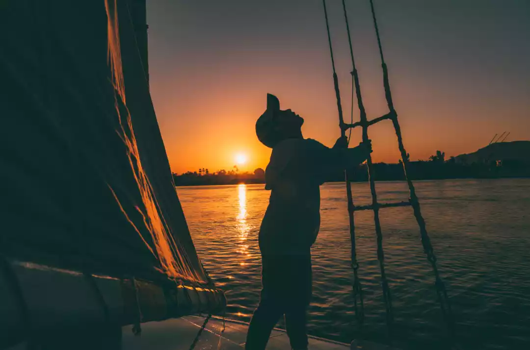 Let the wind carry you for a while, the golden sunlight shines on the canvas, and enjoy the feeling of sailing on the Nile. The sunset and the sailboat are so beautiful! The Nile River, the mother river of Egypt!