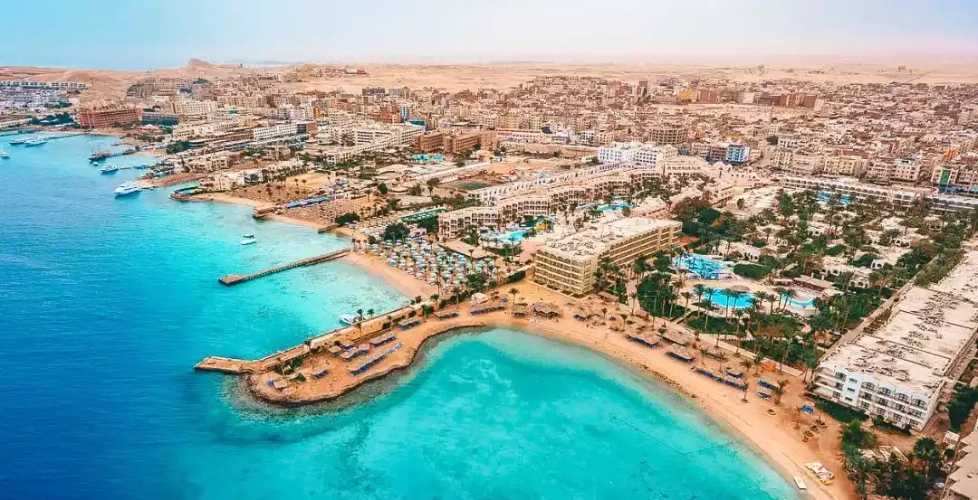 Hurghada lies on the Red Sea coast, with the Sahara Desert on one side and reefs and azure waters on the other. With year-round sunshine and water temperatures around 20°C even in winter, it's a popular diving and snorkeling destination at any time of year.