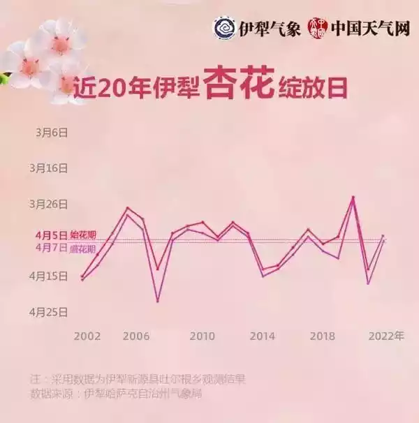 According to the recent temperature forecast for the apricot blossom distribution areas, this year's apricot blossoms in the Pamirs of southern Xinjiang are expected to gradually bloom around March 20. The apricot blossoms in Turgen, Yili, will reach their peak flowering period in early April, around the Qingming Festival, and the peak flowering period is generally about 7-10 days.