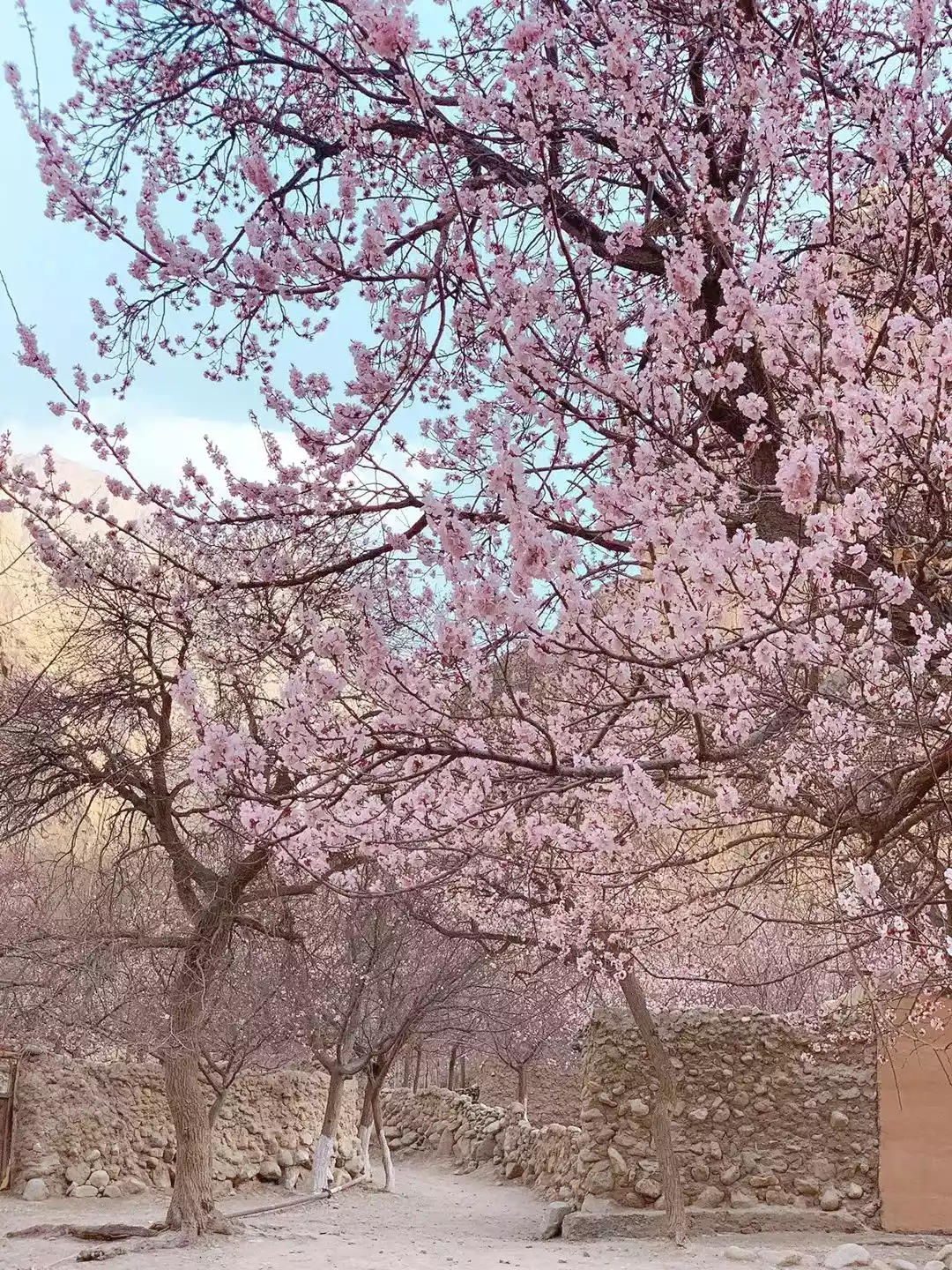 The mysterious Pamir Plateau always reminds people of "desolate and remote", but the Creator has hidden a field of soft apricot blossoms in the heart of the Karakoram Mountains.