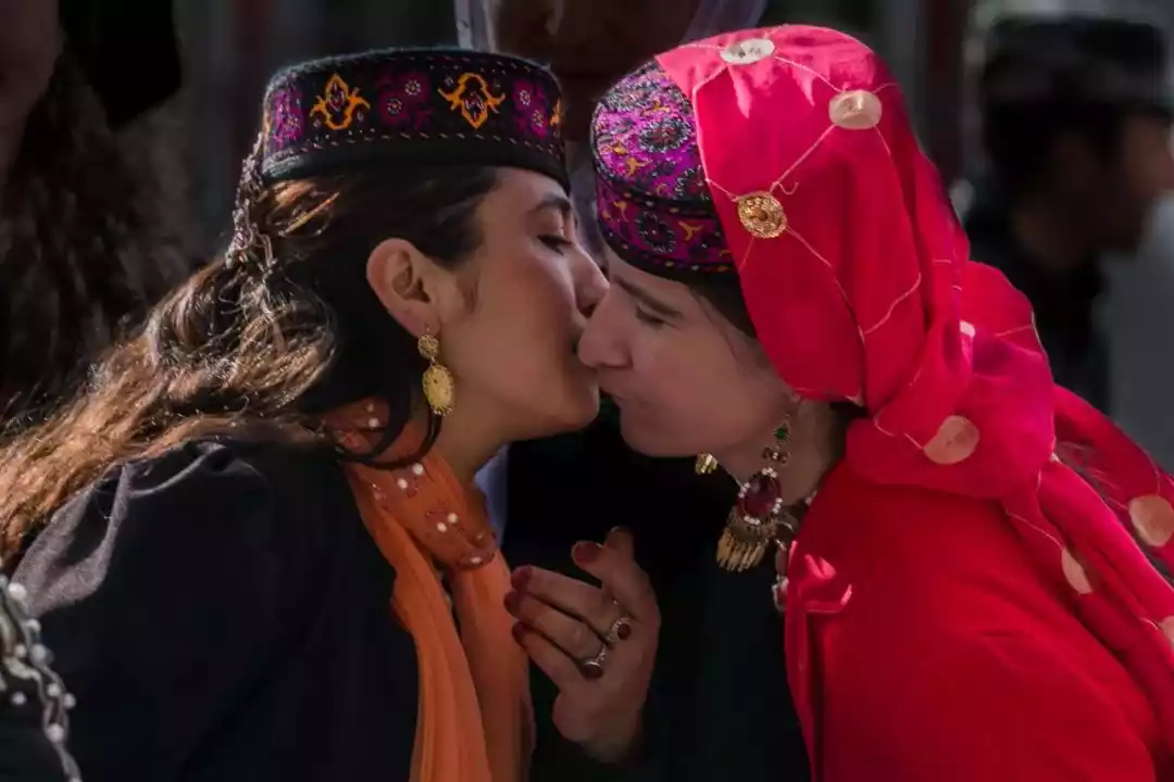 Tajiks have obvious Aryan features, such as high nose bridge, blue eyes, white skin, hooked nose... They still retain some Western-like etiquette, such as the kissing etiquette.