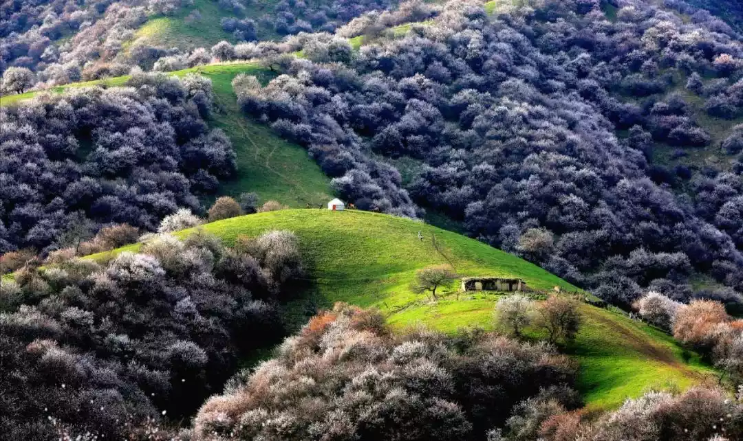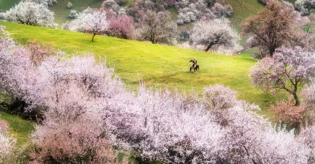 Ili boasts boundless scenery, showcasing the culture and beauty of the Pamir Plateau. When a pink dream envelops the gradually greening grasslands and valleys, anyone visiting Xinjiang during apricot blossom season can dream a romantic dream of spring.