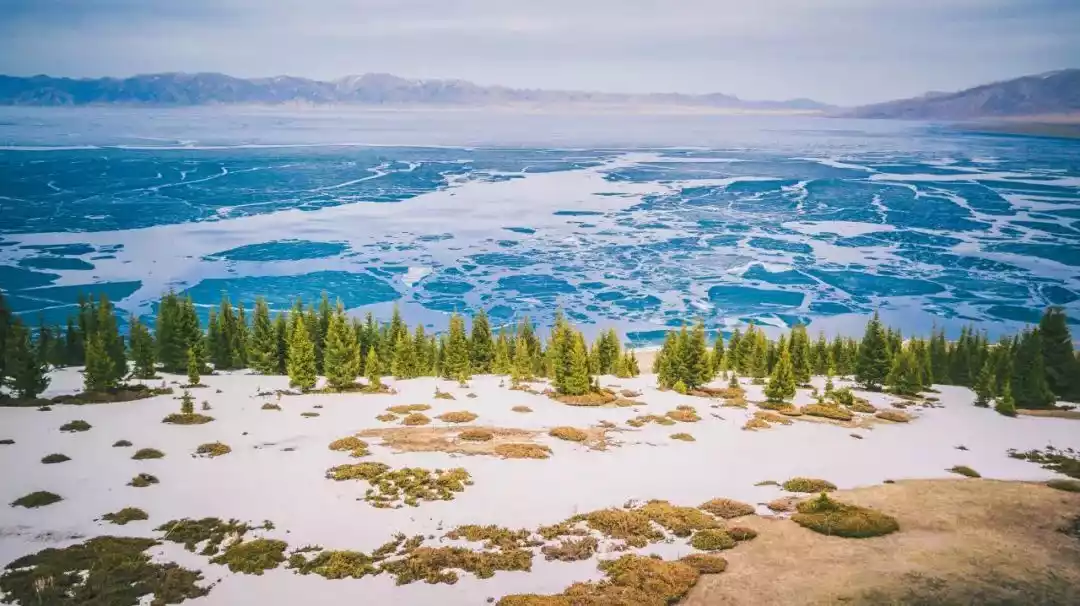 The spectacular blue ice of Sailimu Lake, which was frozen in winter, began to melt in March and April. The thick ice was pushed to the shore by wind and waves, piling up layer by layer. It was incredibly beautiful under the sunlight. I strongly recommend a trip to Sailimu Lake in spring!