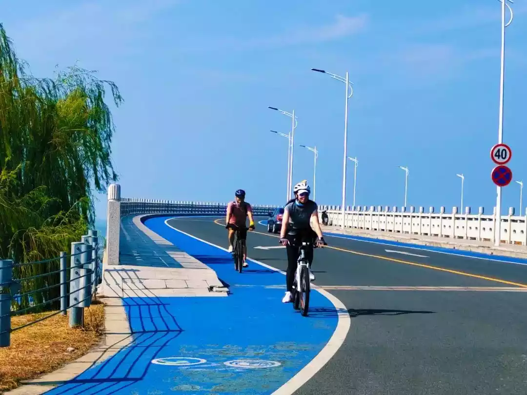 The 800-li Taihu Lake, with its 36,000 hectares of blue water, has a vast surface area. Driving is too fast and walking is too slow. In addition, the road conditions along the way are excellent, making it especially suitable for cycling.