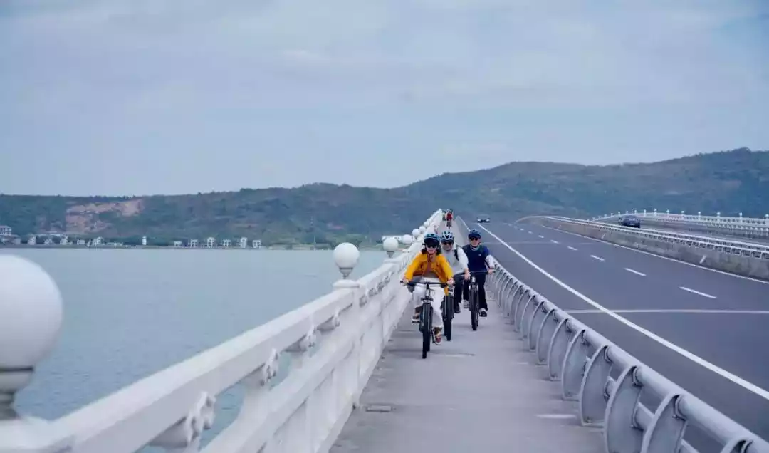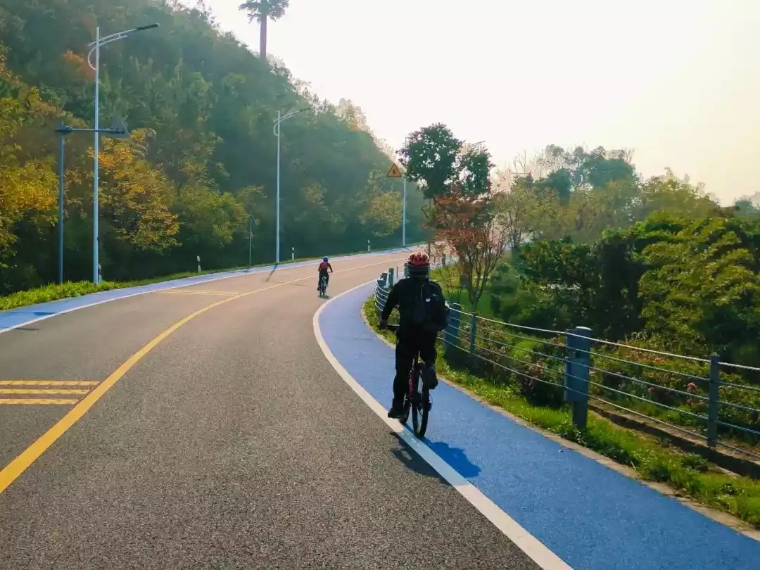 Along the Xinghu Greenway, there are towering peaks and forests and surrounded by green waters. The entire cycling greenway is 16 kilometers long. You can follow the leader to ride and have fun, take everyone to pose together, and enjoy a leisurely time.