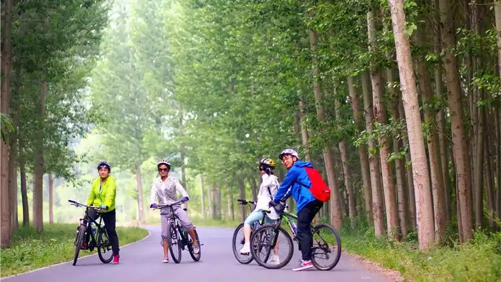 Here, free from the hustle and bustle of the city, lies a tranquil and leisurely atmosphere. Birds chirp amidst the trees, and the greenway blends beautifully with the mountains and lakes. Feel the cool breeze as you journey, and gaze upon the towering peaks. Cycling with friends is a rendezvous with nature!