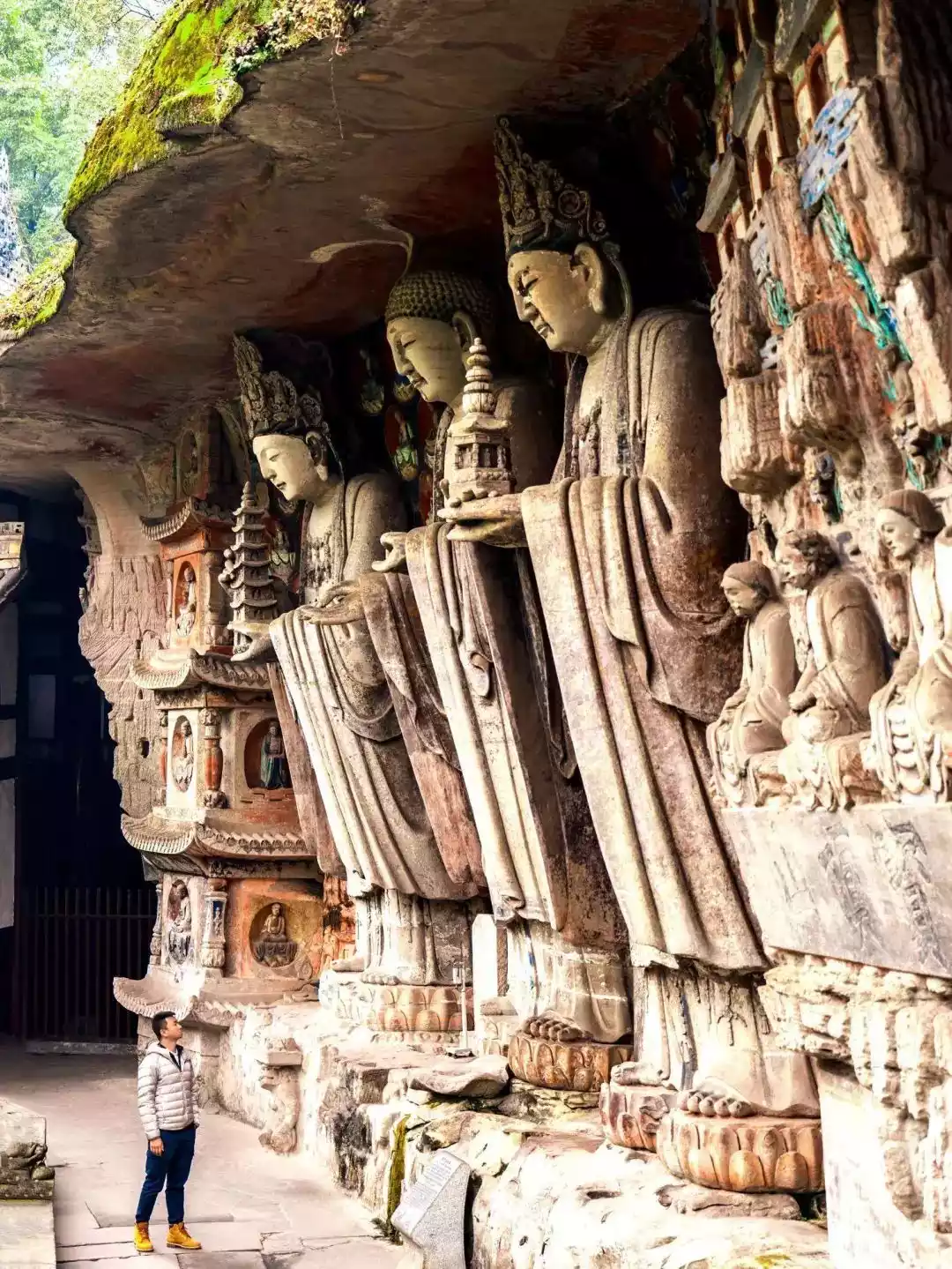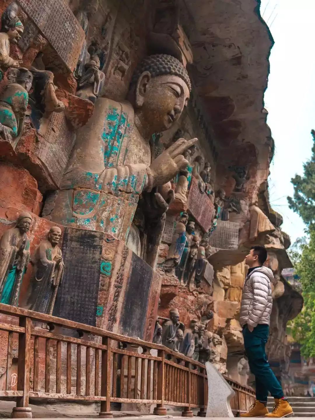 This place nurtured the magnificent art of cliff carvings. You guessed it! The Dazu Rock Carvings, one of the "Eight Great Grottoes of the World," are a prominent example of grotto art dating from the 9th to the 13th centuries. They were first quietly created a thousand years ago during the late Tang Dynasty.