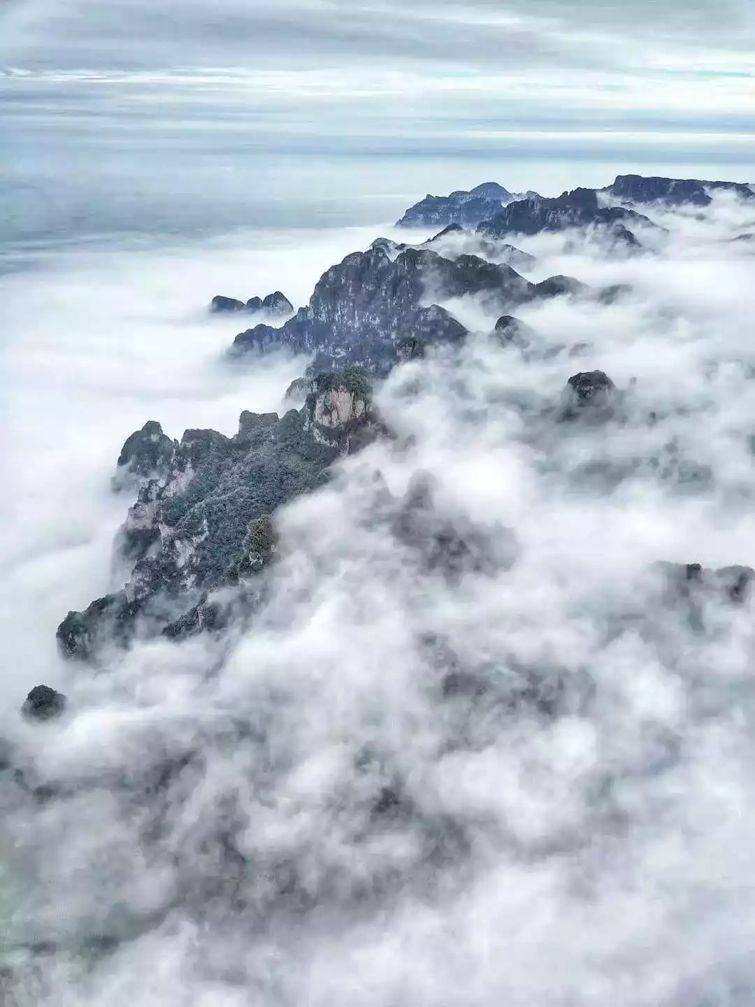 Due to the large altitude difference in Wangmangling, a sea of clouds appears after heavy rain or snow, which occurs for about one hundred days a year.