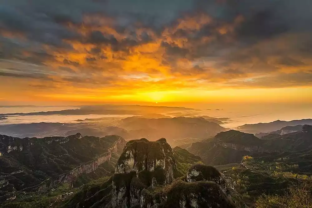 The Taihang Mountains have multiple landforms and rich experiences. They are characterized by numerous broken rocks and towering cliffs. The terrain is so steep that many stunning views are difficult to reach by car.