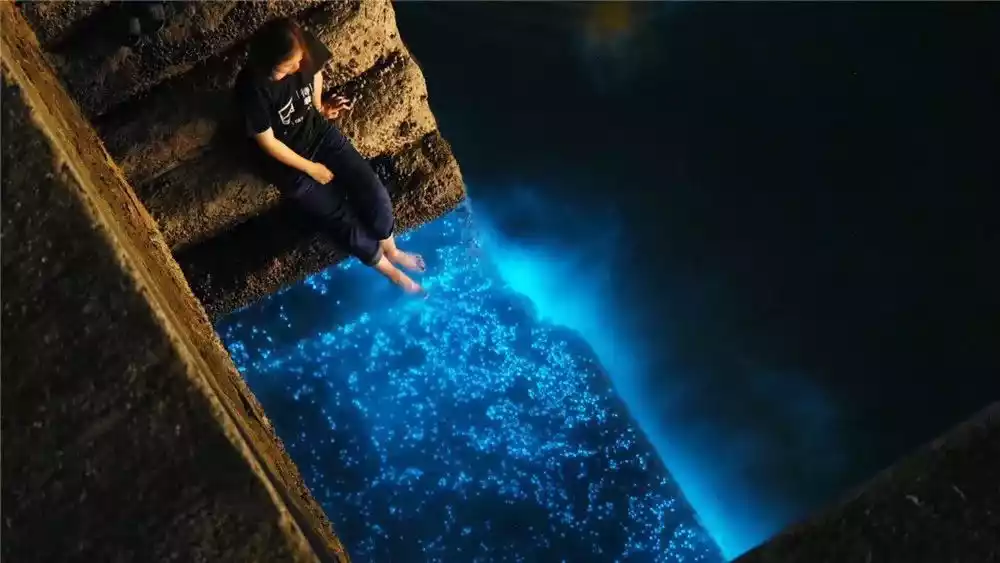 May and June are the peak season for the island's blue tears. In Ang Lee's film "Life of Pi," the nighttime scene of the sea churning out fluorescent light is vividly recreated before our eyes. It turns out the sea has another kind of nighttime blue: the color of stars falling into the sea.