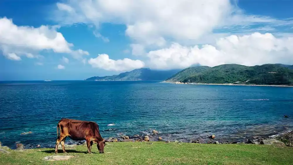 The ecological environment here is well preserved, with docile cows, artistic pavilions, clear blue waters, emerald green grass, and a coastline made of bizarrely shaped rocks.