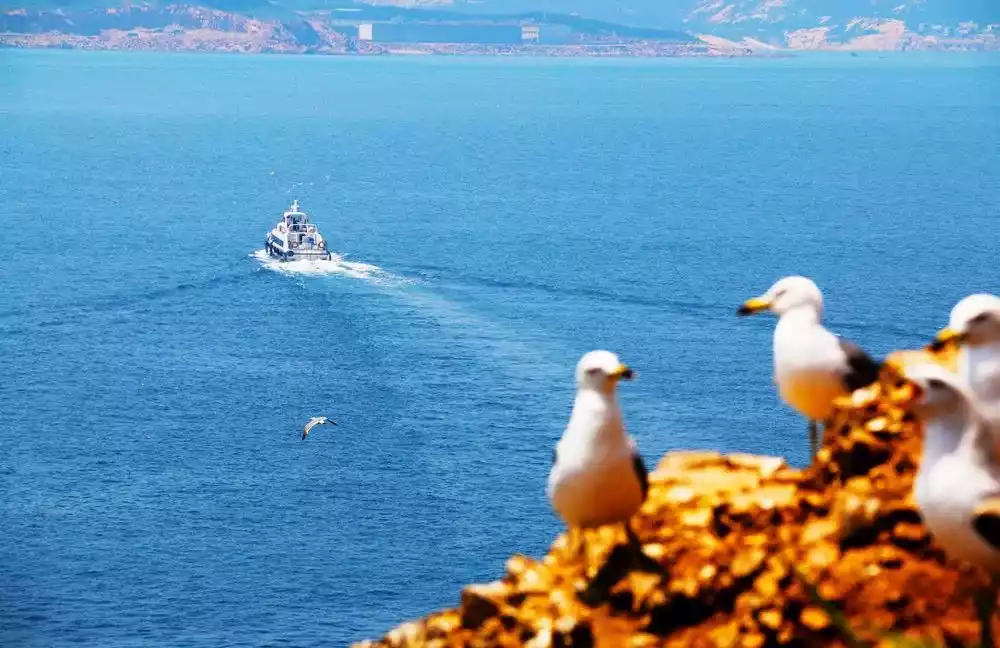 The sea water around the island is azure, seagulls are circling in the sky, and the island is full of seagulls. From a distance, it looks like a huge snow mountain floating on the sea, with the blue and white colors echoing each other, which is very eye-catching.