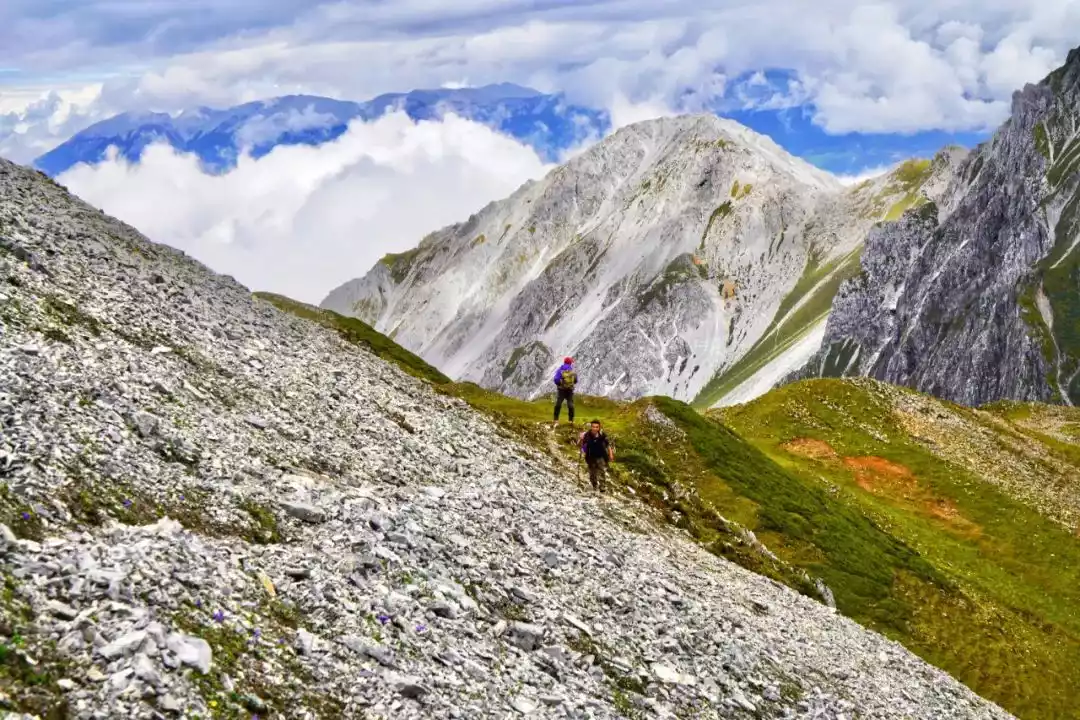 Here you can find clear and magical lakes, unknown alpine pastures, snow-capped mountains left over from ancient times, alpine rhododendrons all over the mountains, and quicksand slopes that look like the surface of Mars.