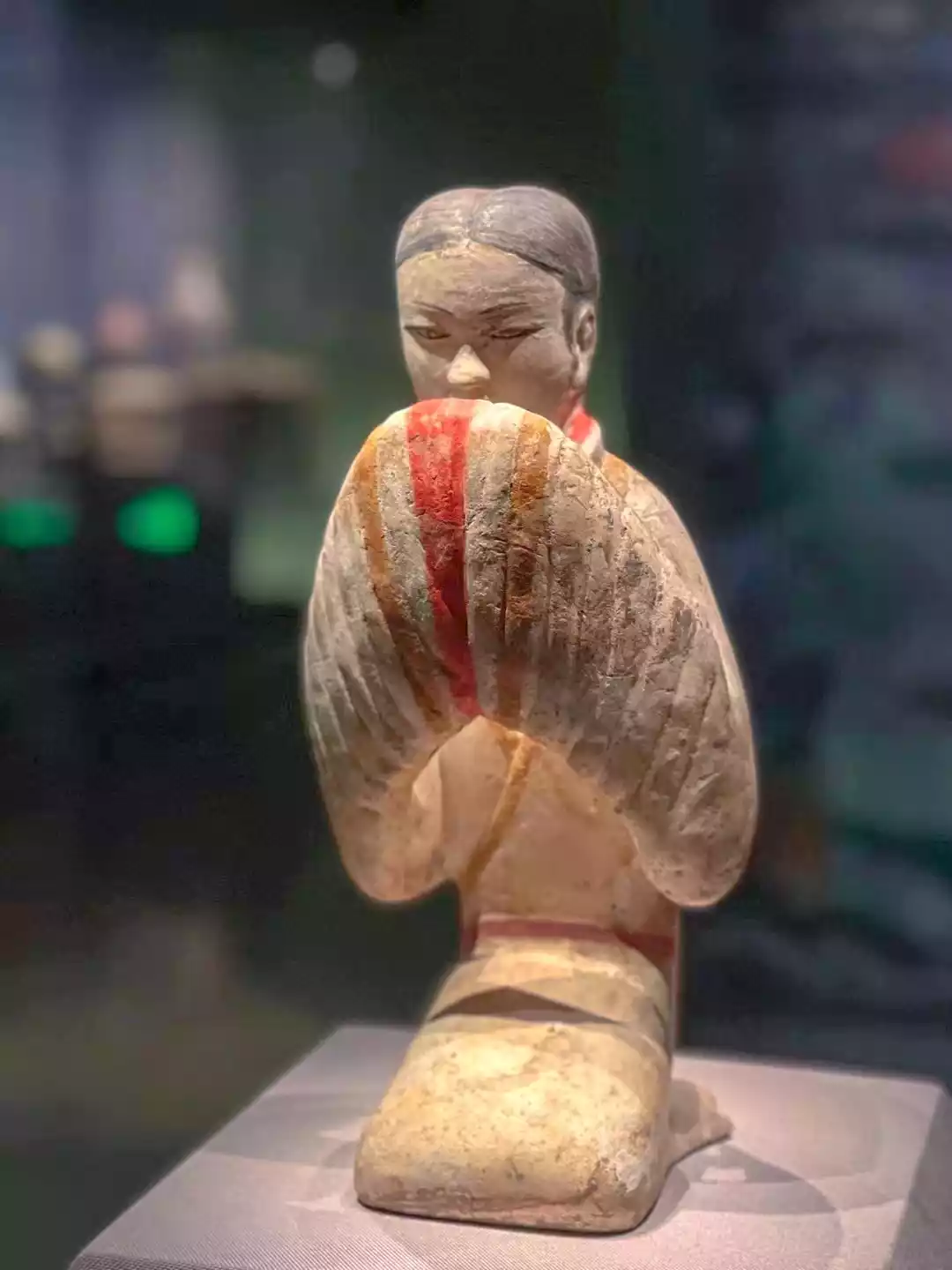 Most of the Han Dynasty pottery figurines have upturned eyebrows, eyes, and lips, as if smiling from the heart, representing the mental state of the Han people under the "Reign of Emperor Wen and Emperor Jing"