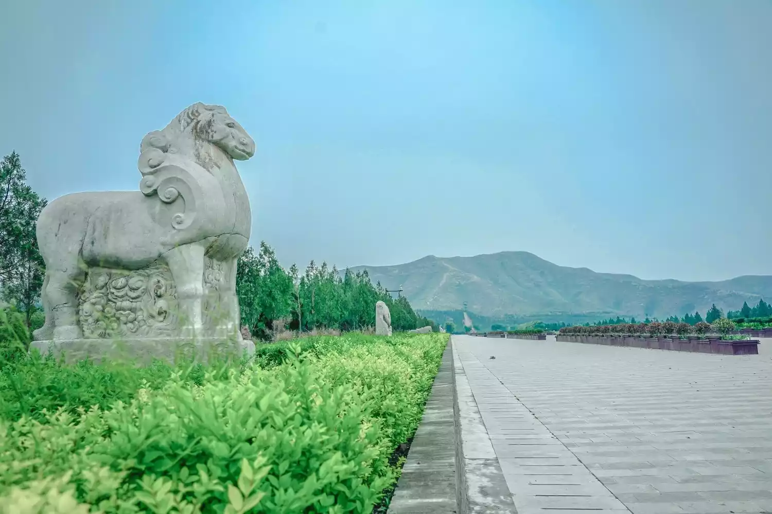 Qiaoling was built during the prosperous Kaiyuan Period, when China was at its peak. The artistic modeling of the stone carvings sought to display the grandeur and magnificence of prosperity. After thousands of years of wind and rain, the more than 50 huge stone carvings preserved in Tang Qiaoling, including stone huabiao, stone ostriches, stone horses, stone men, stone unicorns, stone lions, etc., are still clear in shape, vivid and natural, telling the majesty and glory of the prosperous Tang Dynasty.
