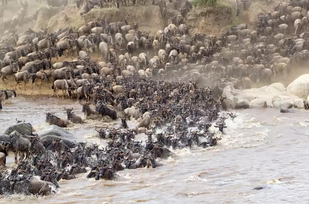 The Great Migration of East Africa is also known as the Wildebeest Migration. In order to seek water and grass, millions of wildebeests, hundreds of thousands of zebras and antelopes will form a huge team and carry out regular annual migration activities, heading north from the Serengeti Reserve in Tanzania and ending at the Masai Mara National Park in Kenya.