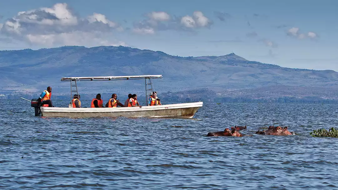 Lake Naivasha is the only freshwater lake in Kenya, home to the largest number of hippos and birds.