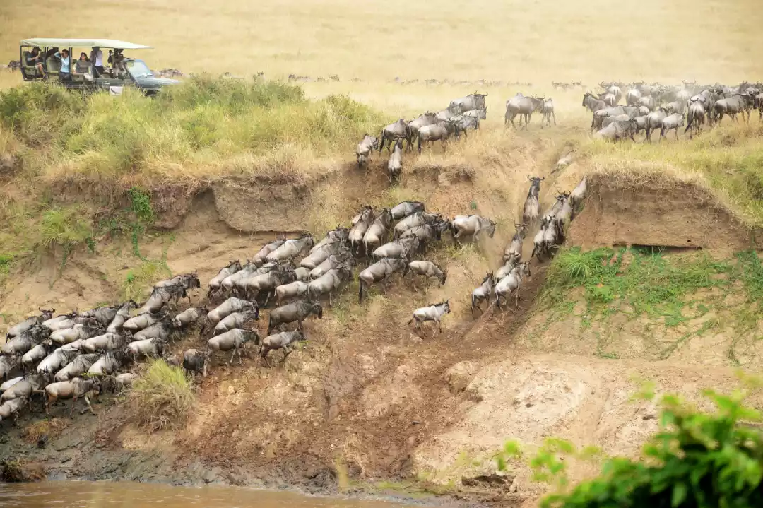 From July to September, herds of wildebeest pass through the Grumeti River and the Mara River and arrive at the Masai Mara.