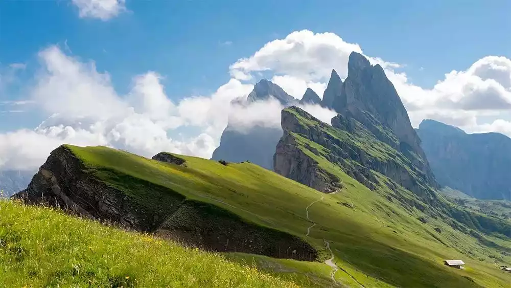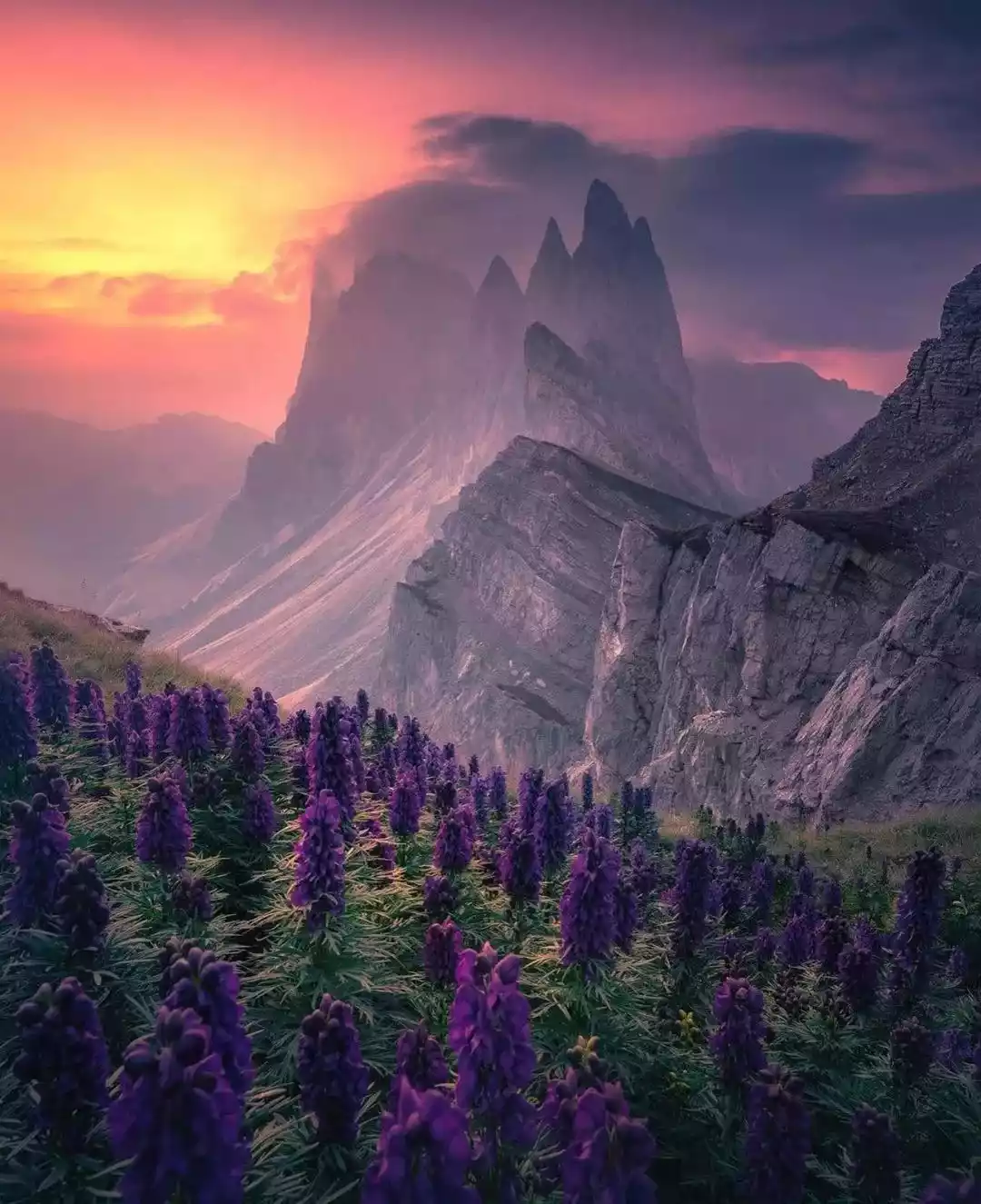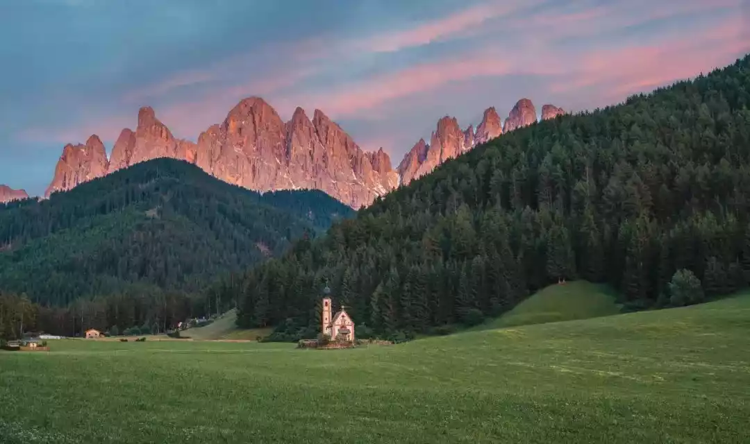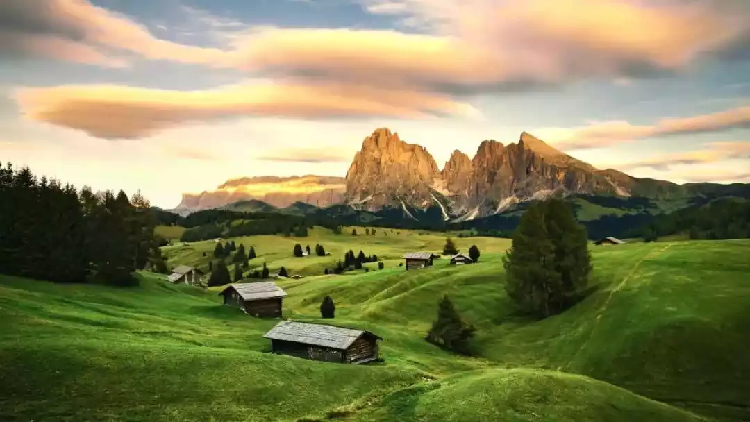 Mount Siusi is located at the foot of the Geisler Peak, in the deep Furness Valley. It is dotted with mountain churches, pastures full of cattle and sheep, and intricately carved German towns. It is like a paradise, so it is also known as the "Pearl of South Tyrol".