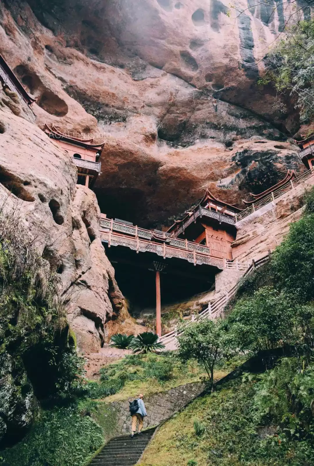 Here is the Taining Ganluyan Temple, known as the "Hanging Temple of the South", which is built in the Danxia Cave. Its unique structural structure of "one pillar inserted into the ground without a single tile" is really shocking to see with your own eyes!