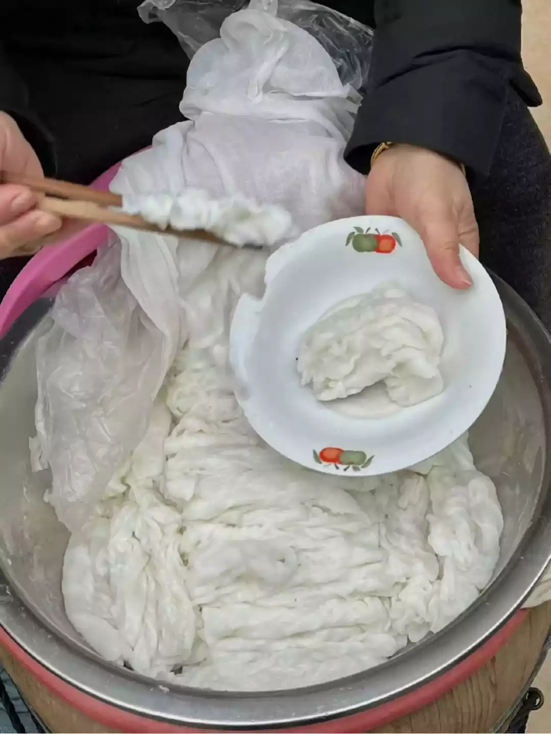 Different from the cold noodles in northern Shaanxi, the key feature of rice jelly noodles is the smoothness. The appropriate ratio of rice milk creates its smooth and easy-to-break fluidity.